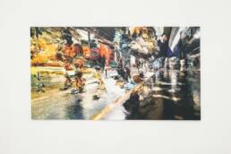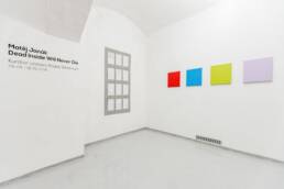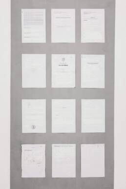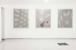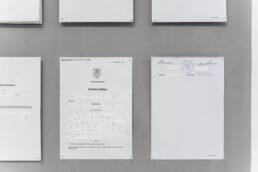 The core theme of Janák’s first solo show is the concept of a journey. It is no coincidence, then, that the exhibition unfolds as a series of loosely connected installations that interlace with one another. The individual stops, conceptualized as minimally defined spaces, are clearly tied to a personal mythology, symbolizing various stages of self-awareness and self-determination that everyone encounters in different forms throughout life. Here, Janák’s ‚subjective‘ endeavour to shift into the objective realm and personal experience subtly merges into a universally recognized collective consciousness.Moreover, the exhibition’s thoughtful design prompts an awareness of self-analysis, firmly situated in the mental sphere. Thus, if the metaphorical expression ‚going through something‘ is commonly used in daily discourse to denote life’s trials, this exhibition materializes such experiences, translating them from the abstract to the tangible. A diverse display of visual mediums, spanning from documentary lettrist collages of official notices and subpoenas, to mechanical optical raster and lighting technologies, offers varied channels of communication that engage both the intellect and the physical experiences.